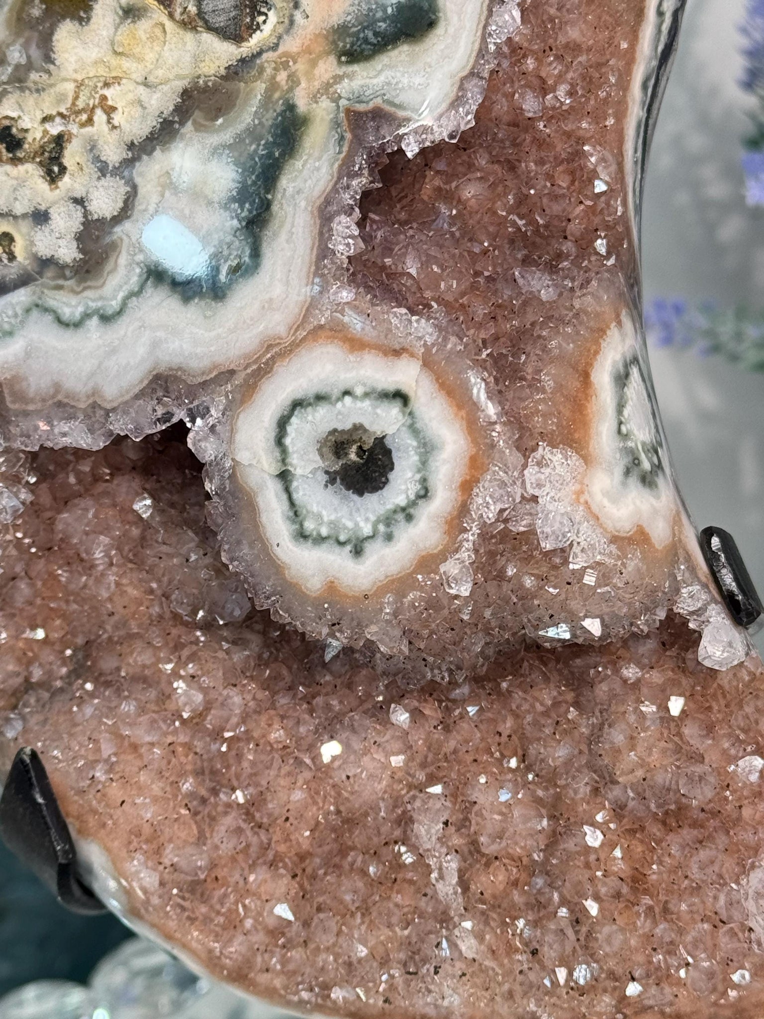 Druzy amethyst moon with stalactite and jasper eye