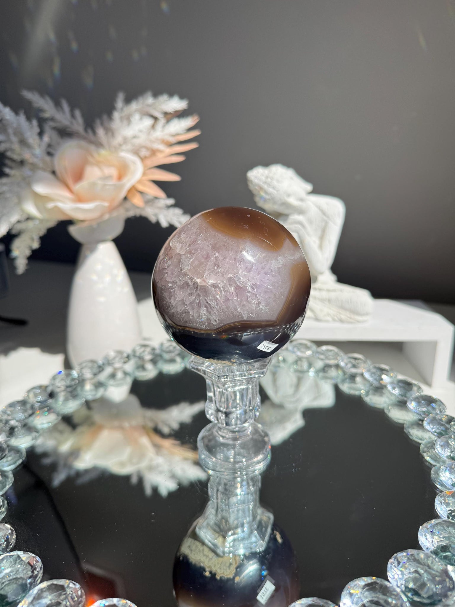 • Load image into Gallery viewer, Orange rainbow amethyst sphere with agate 3151