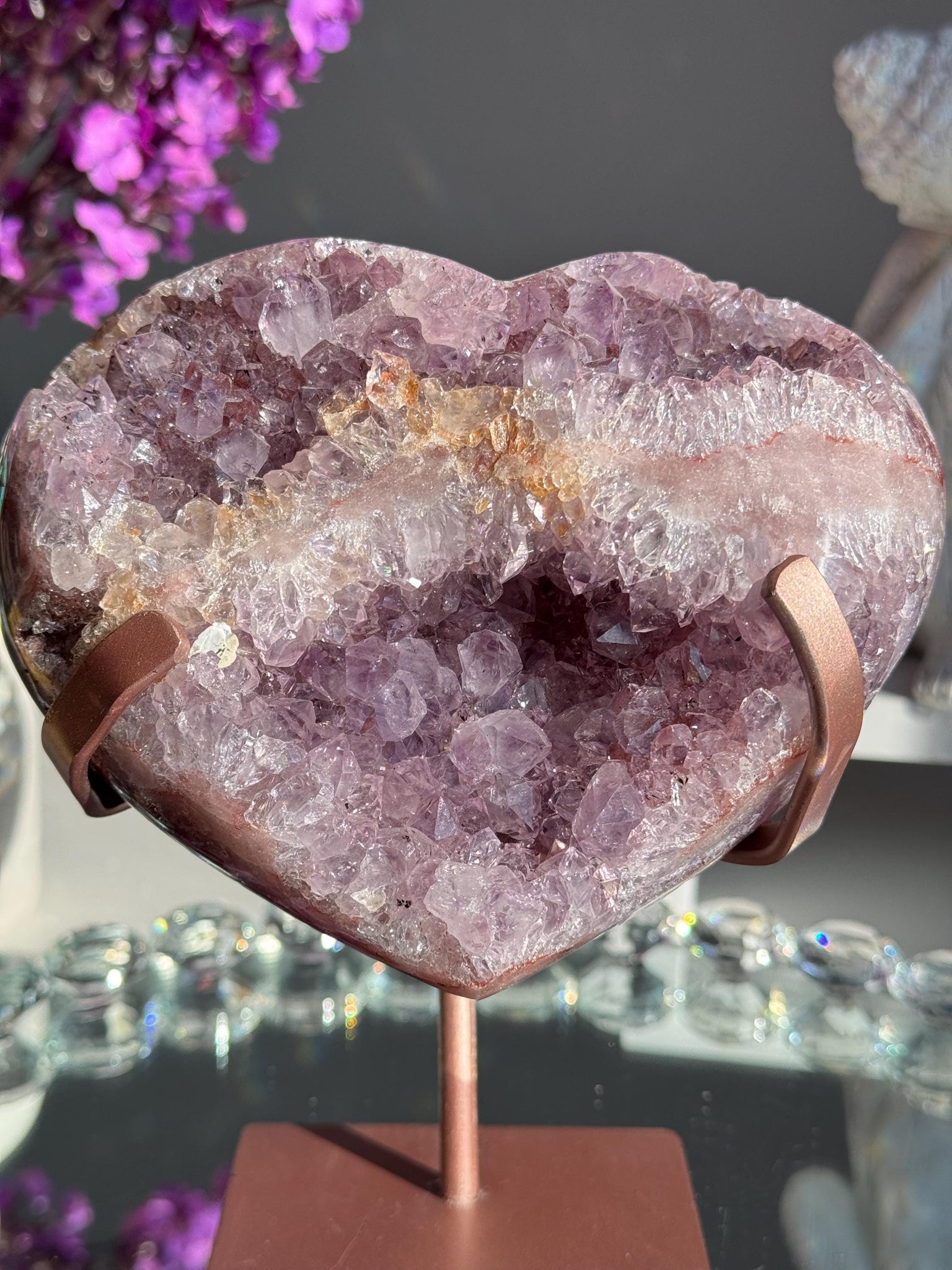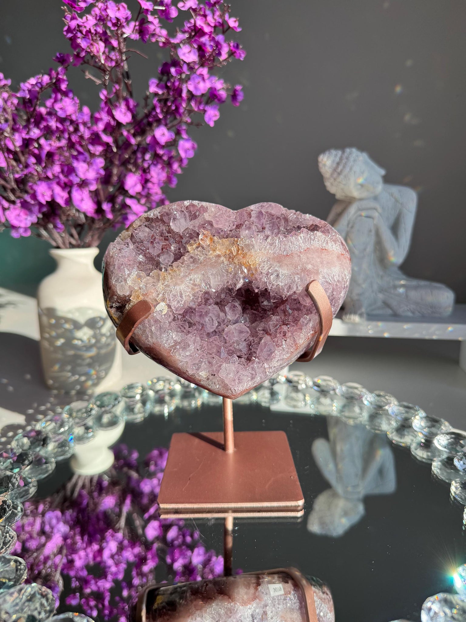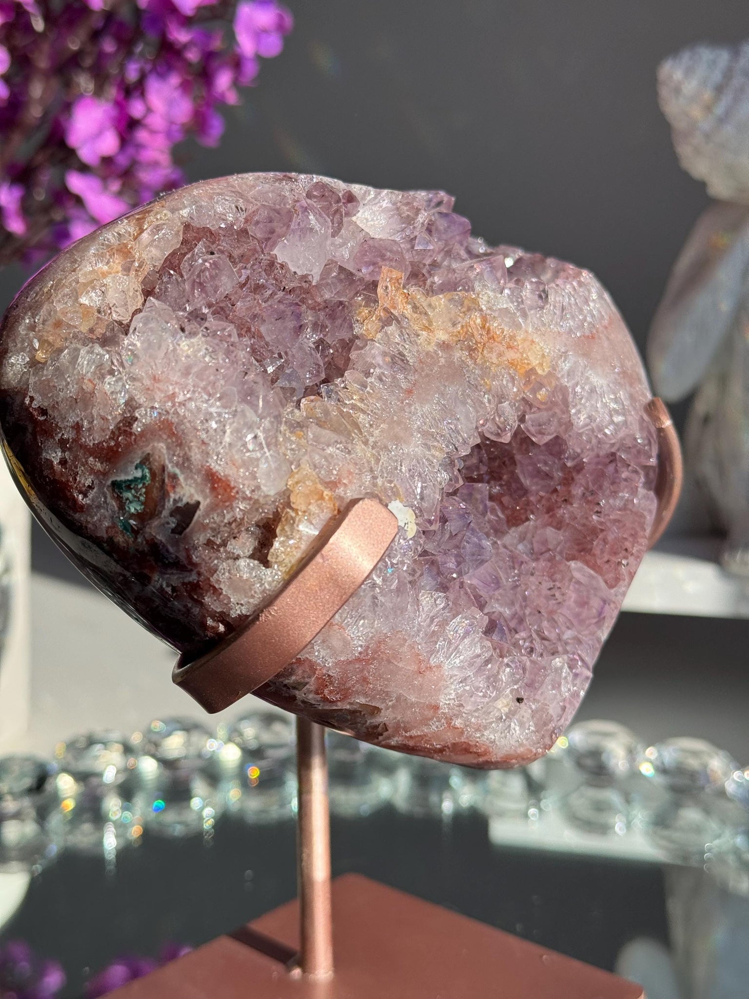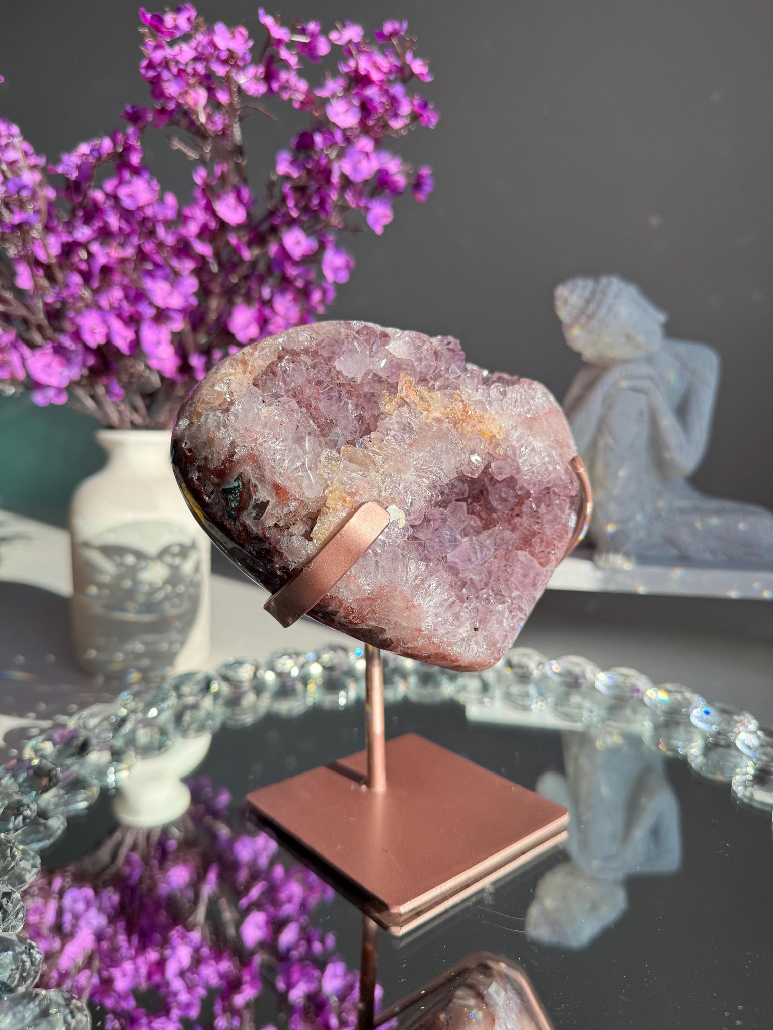 Druzy pink amethyst heart with Amethyst and jasper 3079