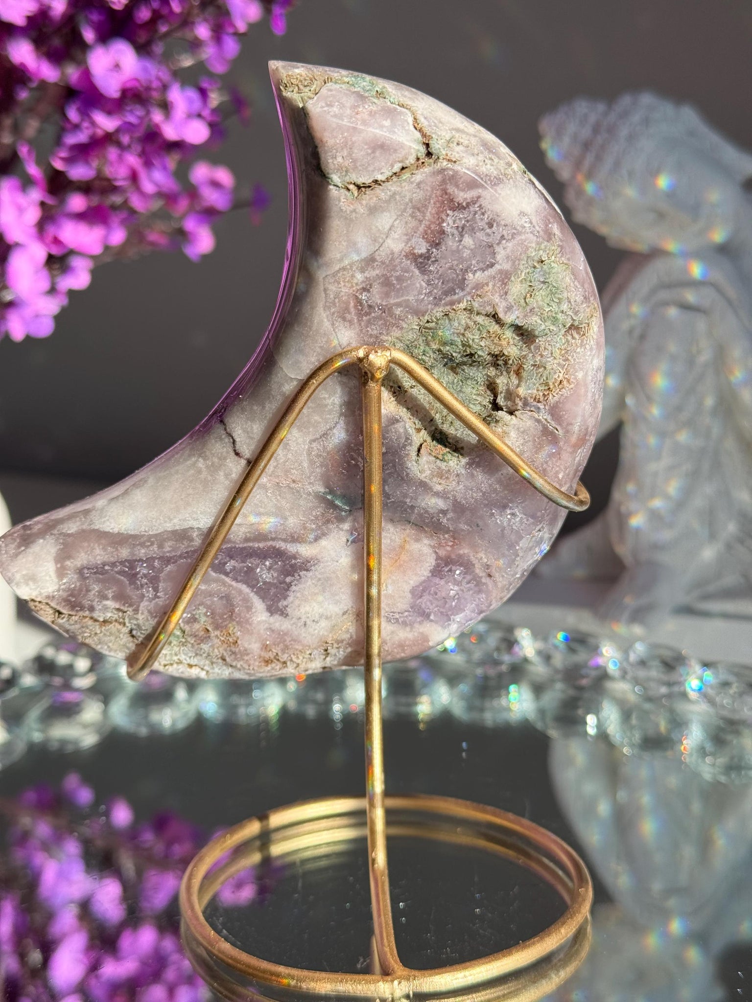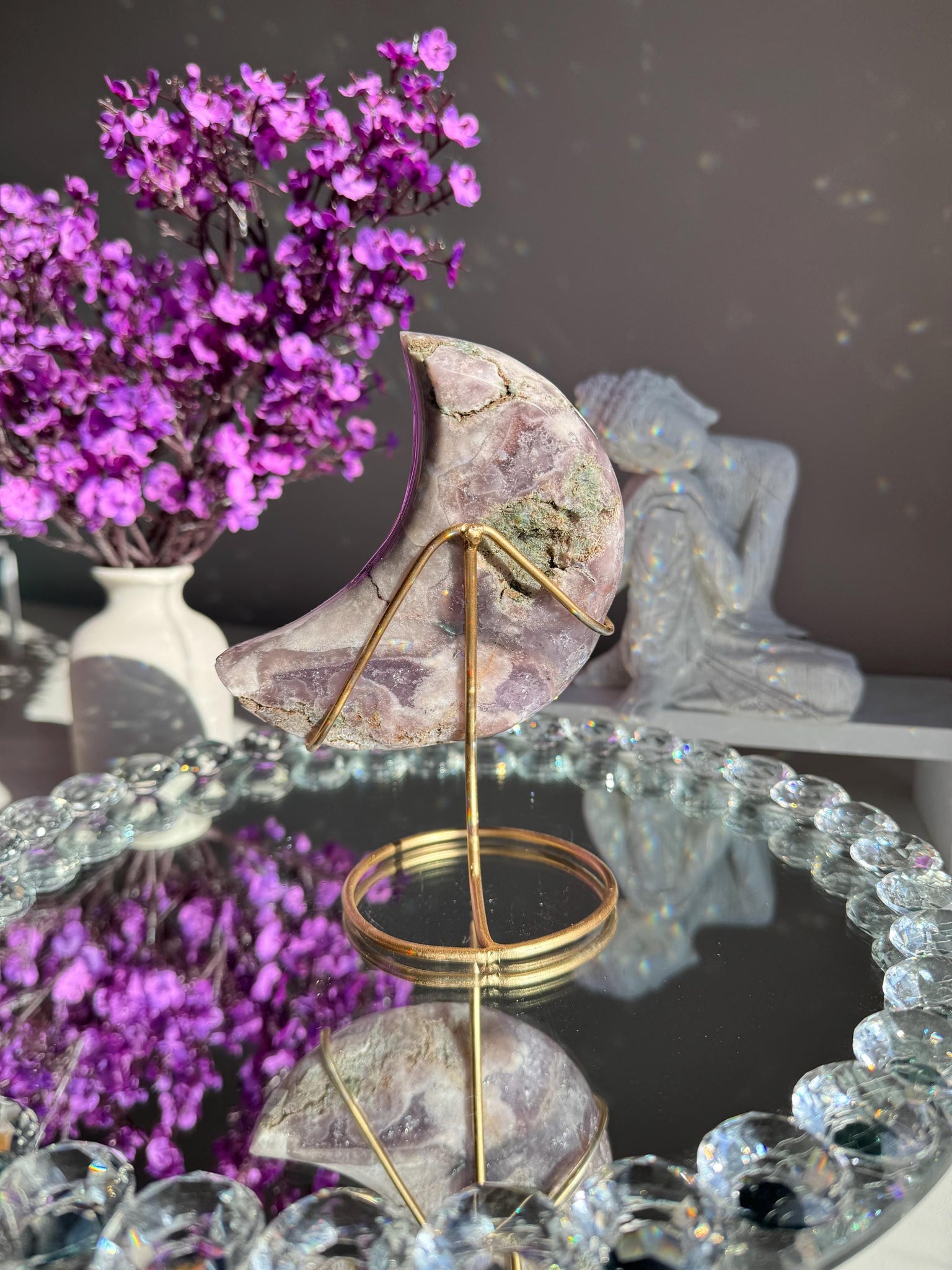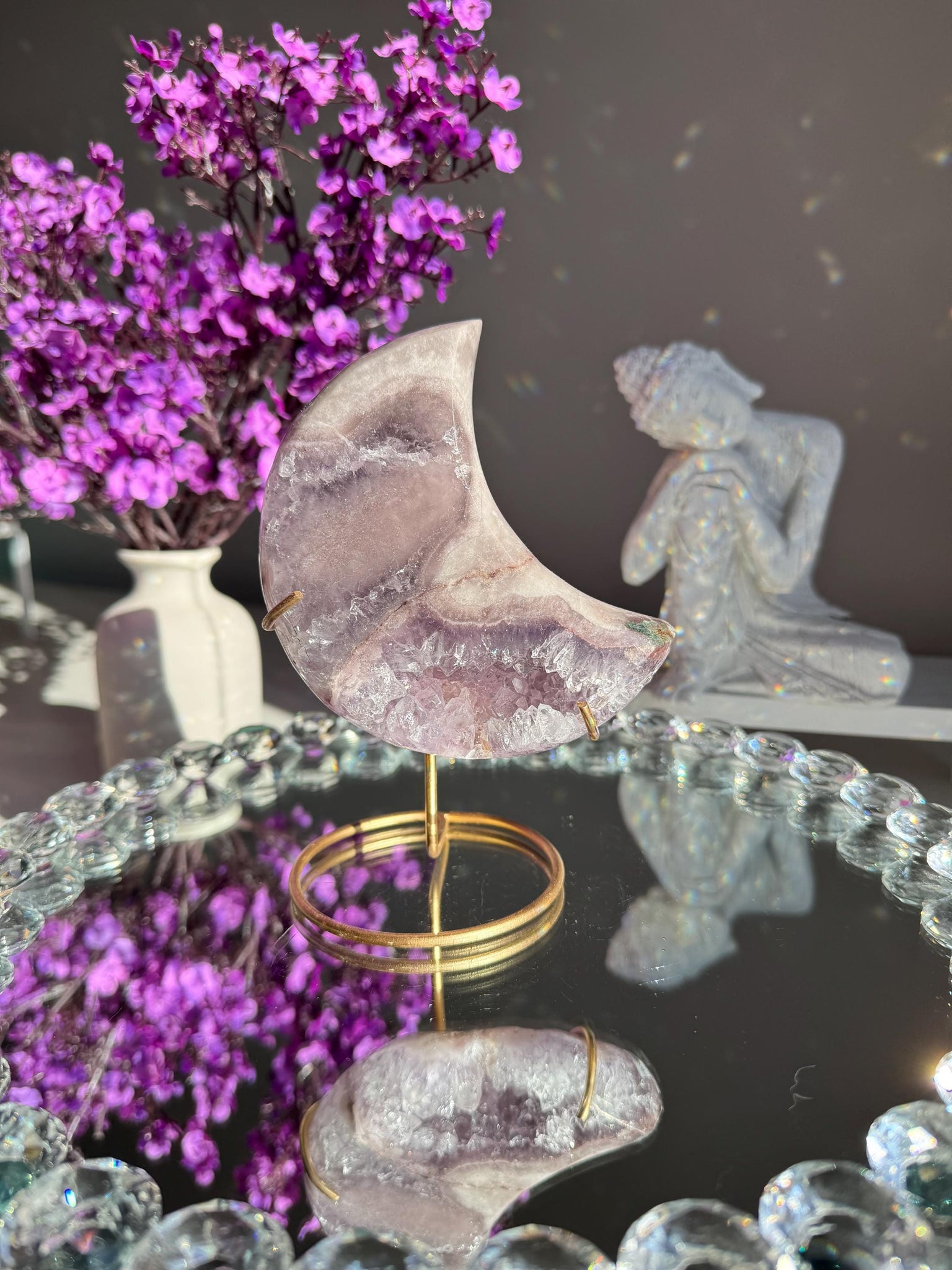 Lilac Pink amethyst moon with amethyst healing crystals 3074